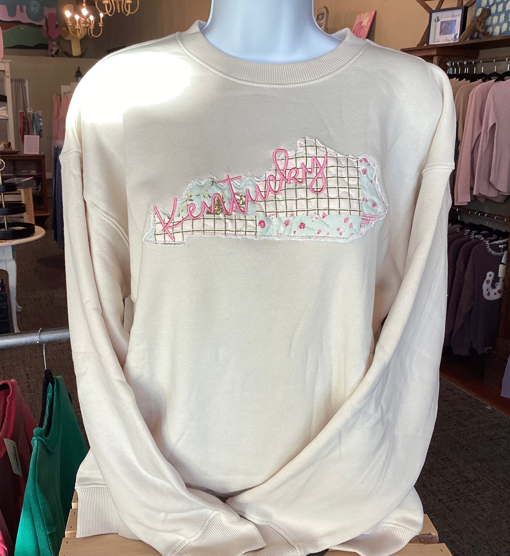 Kentucky state appliqué on soft sweatshirt